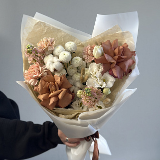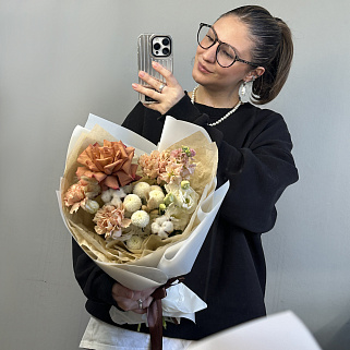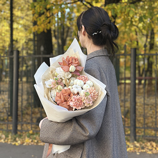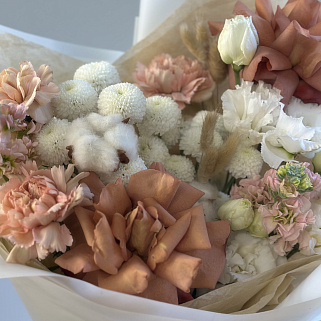 Наш ассортимент включает как компактные сборные букеты в крафт-упаковке, так и элегантные шляпные коробки, декорированные лентами в теплой гамме. Каждый букет надежно упакован и защищён от механических повреждений, что сохраняет его свежесть и презентабельность при доставке по всему Санкт-Петербургу.