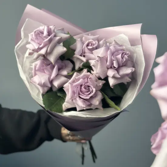 Букет из 5 премиальных роз сорта Ocean Song нежного сиреневого оттенка поможет передать ваши нежные чувства или слова благодарности. Крупные розы со множеством нежных лепестков, вручную вывернутых нашими флористами, обладают нежностью и легким ароматом.