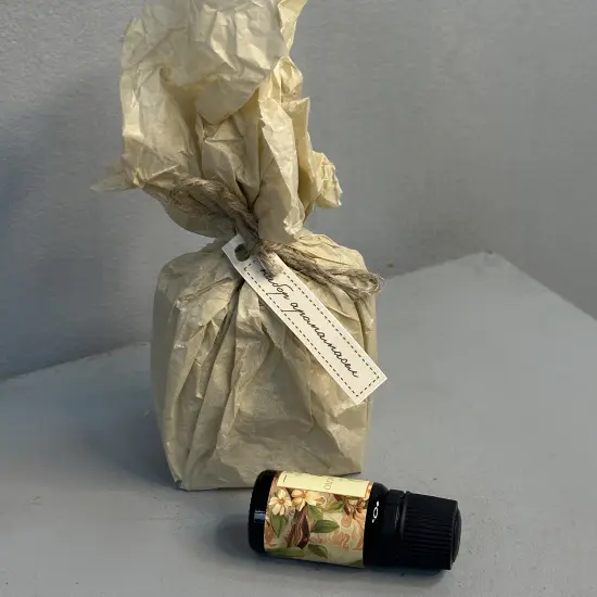 В набор входит 3 упаковки масел с разными ароматами, завернутых в стильную бумагу с биркой