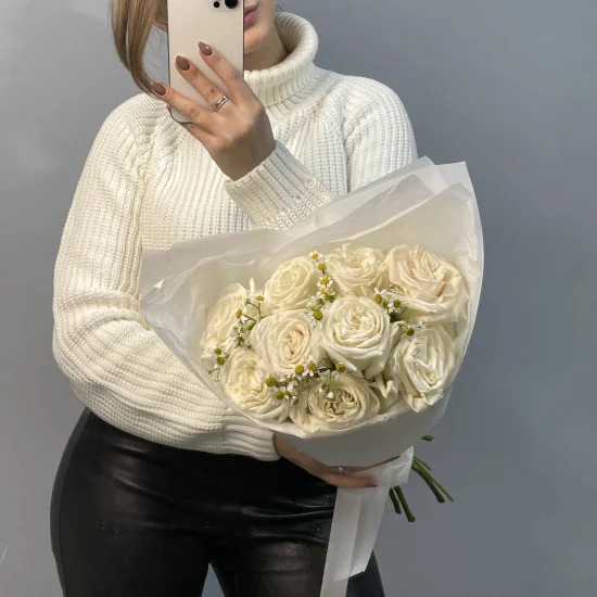 Дуо-букет роз Playa Blanca и матрикарии L