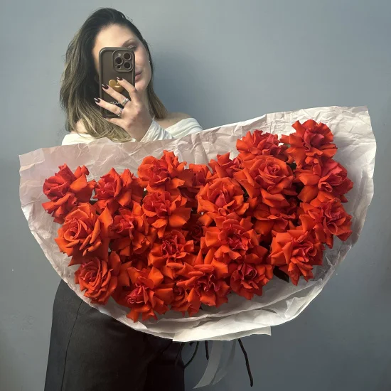 Размер букета из 25 французских роз - около 70 см