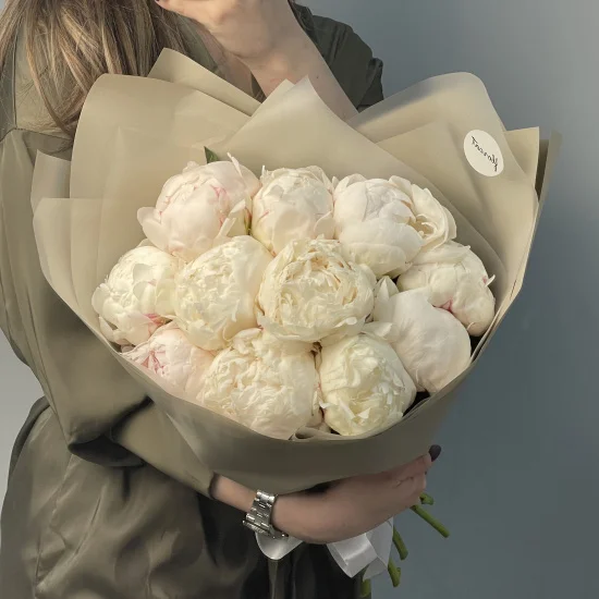 Букет из 15 белых пионов