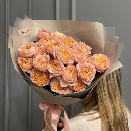 Букет из 7 кустовых пионовидных роз сорта Juliet изящного розово-персикового оттенка поможет выразить ваши нежные чувства.Размер букета из 7 кустовых пионовидных роз Juliet - около 30 см 6500