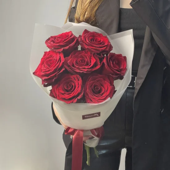 Размер букета из 7 красных роз высотой 50см (Эквадор) - около 30 см