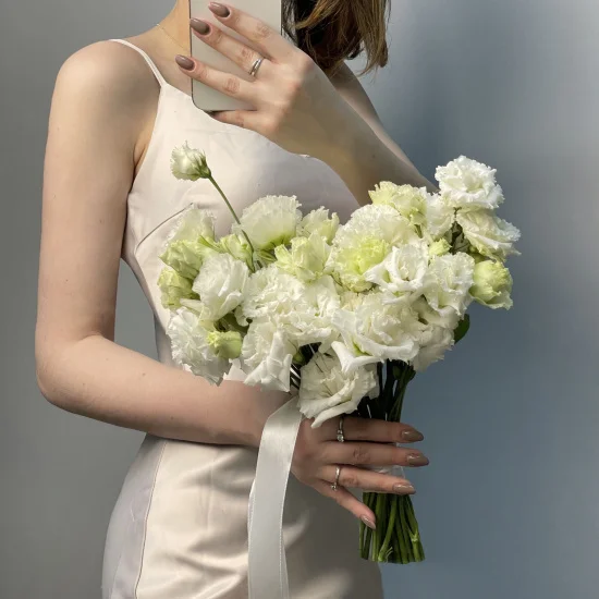 Лицевой свадебный букет невесты из эустомы